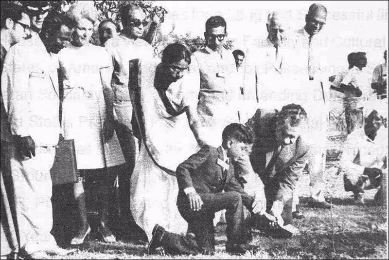 U.S.PRESIDENT RICHARD NIXON AND LKE AMBASSADOR AND OUR PARENTS ENJOYING THE PLANTING CEREMONY AT RAJGHAT, NEW DELHI, 1969. |