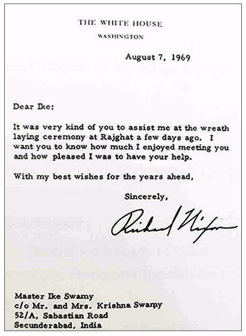 RICHARD NIXON, U.S. PRESIDENTS LETTER OF APPRECIATION TO IKE SWAMY, 1969 |