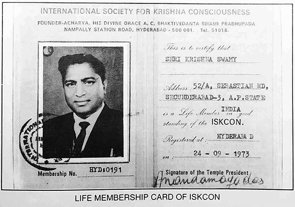 Life Member for the ISKCON (International Society for Krishna Consciousness)