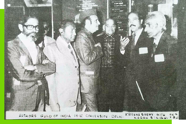 KRISHNA SWAMY WITH RAJA KARAN SINGH, PRESIDENT, AUTHOR'S GUILD OF INDIA, NEW DELHI, (FORMER PRINCE OF KASHMIR, AND FORMER EDUCATION MINISTER OF GOVT. OF INDIA) ON THE OCCASION OF 10TH CONVENSION, ON