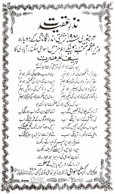 THE URDU CITATION PRESENTED TO SMT. INDRA GANDHI, PRIME MINISTER OF INDIA ON THE OCCASION OF ASSUMING 2ND TERM AS PRIME MINISTER OF INDIA. |