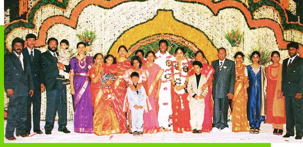 GROUP PHOTO WITH SONS, DAUGHTERS, GRAND SONS, GRAND DAUGHTERS ON THE OCCASION OF 5TH SON NARAYANA SWAMY’S MARRIAGE ON 1ST JULY 1999.